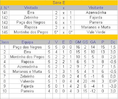 A classificação está neste momento ordenada da seguinte forma após a quinta jornada: